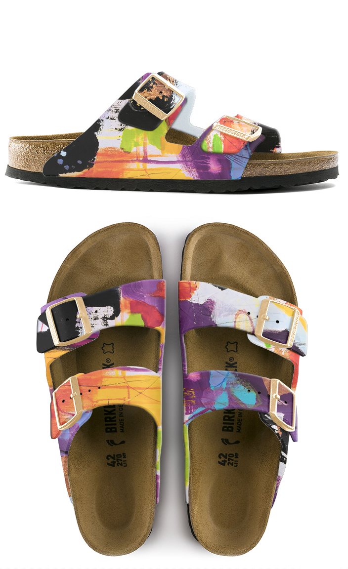 These custom Birkenstock sandals are made to order and hand crafted, especially for you. Shop Courtney's capsule collection here only! I hope you are ready for your new two favorite pairs of sandals. These beautiful abstract prints are perfect for any outfit. Get ready for some compliments, because these pairs are conversation starters!